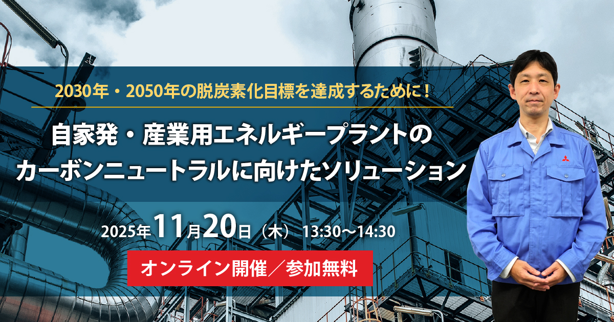 産業用途(石油精製、化学、製鉄、製紙、食品などの製造業)向けの火力プラント(ボイラー、蒸気タービン、発電機を軸とした比較的大規模の電気・蒸気エネルギー供給設備)は、1960 年代の高度経済成長時代から現代まで、ものづくり企業の生産設備の安定稼働を支えてきた一方で、従来の火力プラントの熱源は化石燃料(主に石炭、石油)が中心のため、日本のエネルギー消費の約3 割を超す国内産業界の脱炭素化は、現代の重大なミッションです。